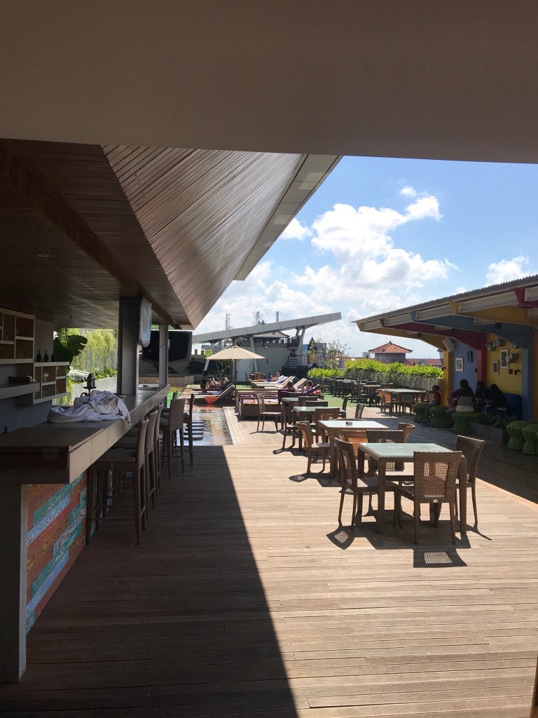 We chose the Vasanti hotel in Kuta, hidden away in between the bustling area. A small boutique style hotel that we found on booking.com for just £35 a night! Our bedroom was super clean and comfortable with breakfast included and a great rooftop pool to start my base tan :).