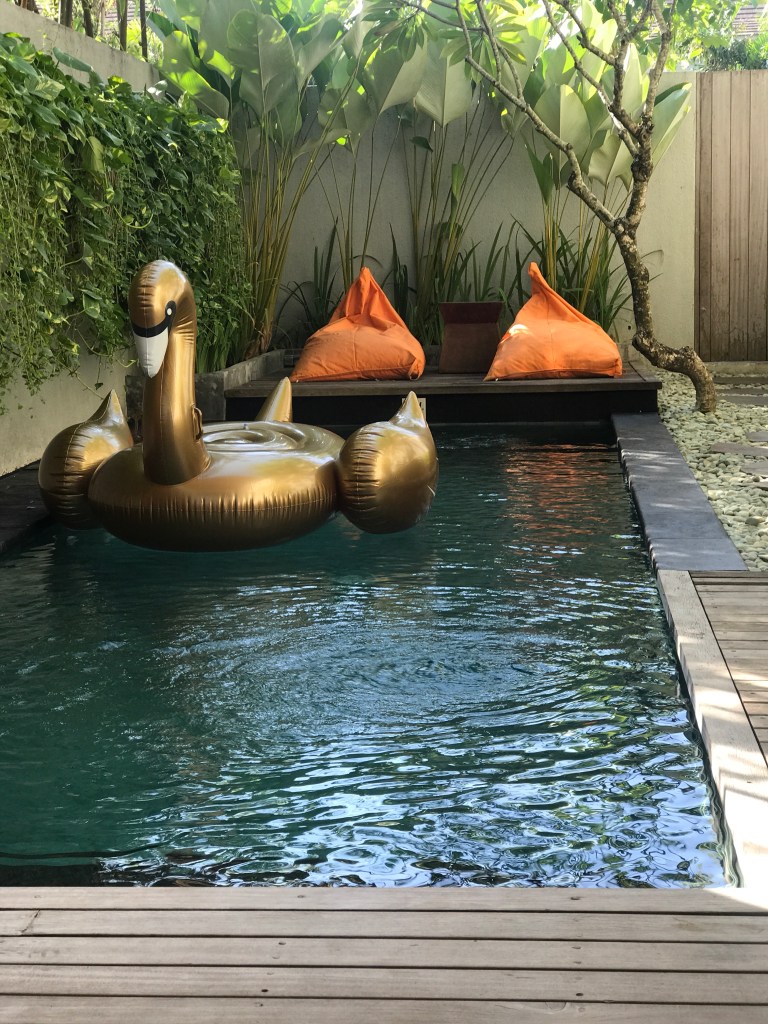We knew Bali was somewhere that people go for full action and activity, but we also wanted to chill out and have moments to relax and really enjoy the pleasures that we were lucky enough to be able to book, and had planned to balance this out throughout the holiday. I mean who wouldn’t with their own private pool!! We even bought our own inflatable to splash around on but we also found out that the villas can provide you with inflatables of your choice at a fee if you aren’t as organised as us HAHA.