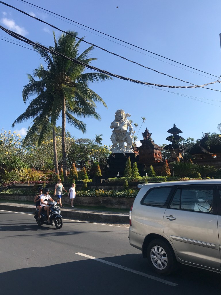 You’ll never get a chance to miss the culture in Bali as there are temples ranging from a small box to a whole statue like this one above placed along the street and outside shops and homes.