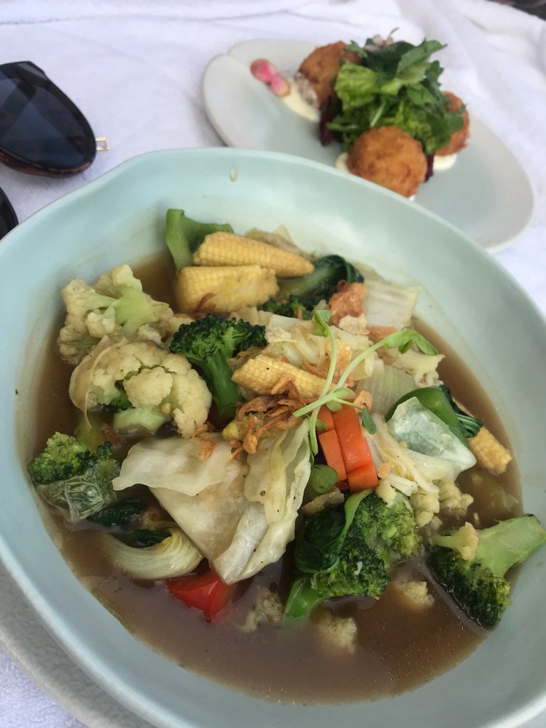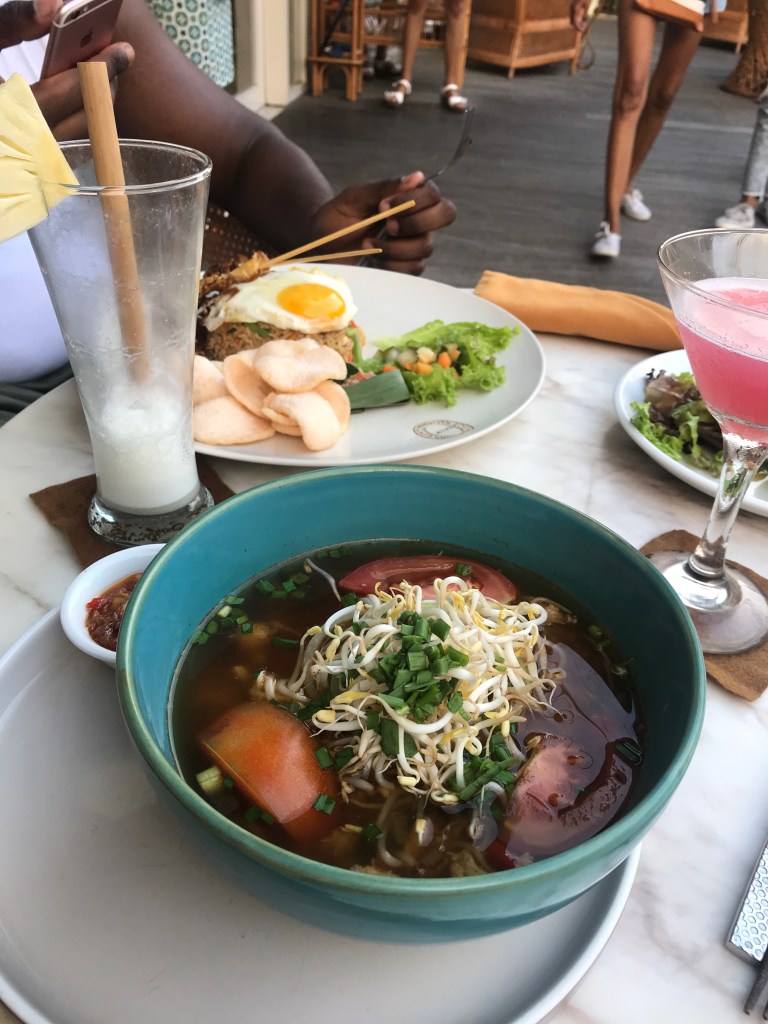 I chose the crab soup which was amazing! Full of flavour even without the crab and vegetable pieces which were super tasty. To top the meal off, the cocktails were great and we realised that they don’t scrimp on the alcohol here! For our first meal in Bali, we were definitely excited for what else we’d find throughout the holiday!