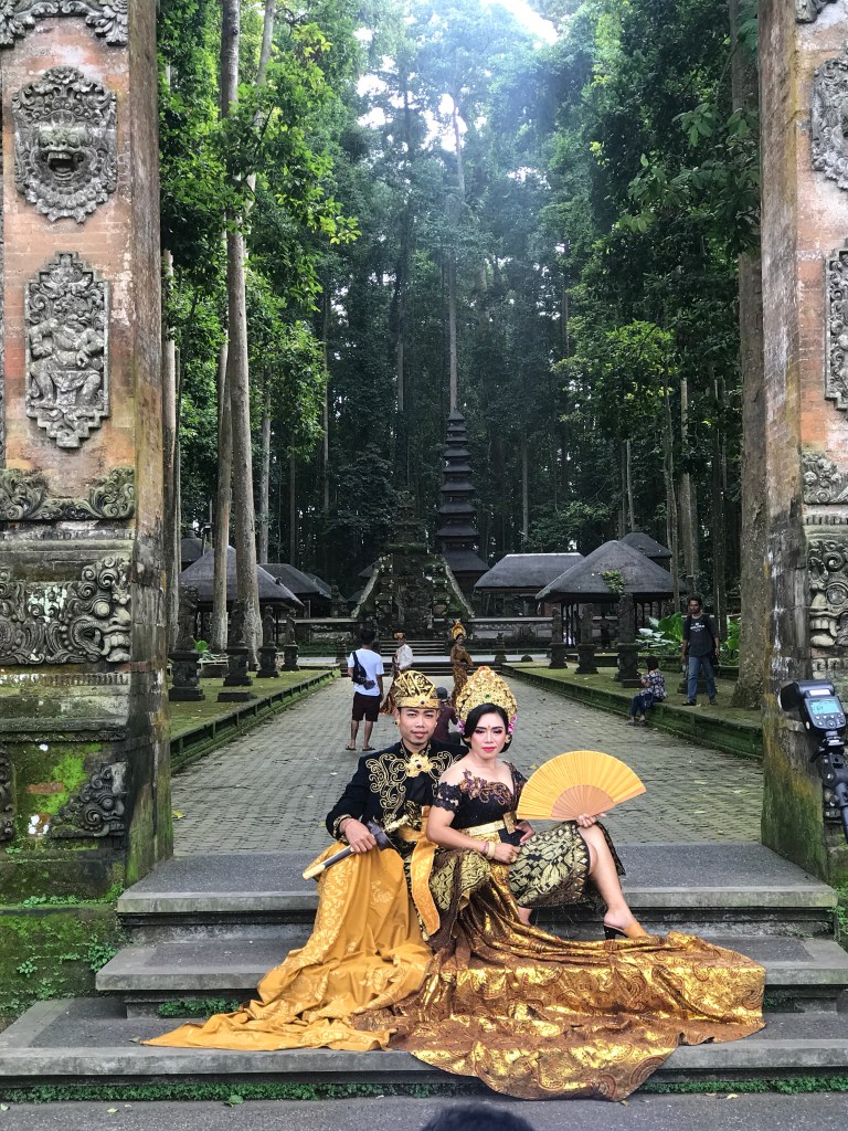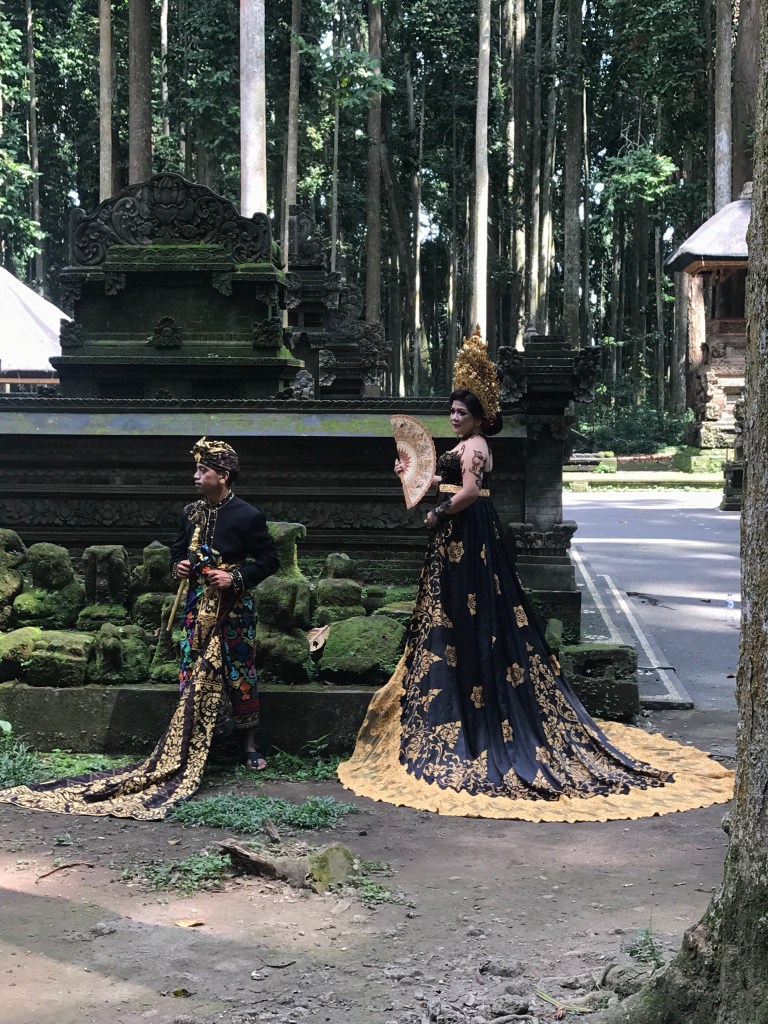 Everywhere we walked we’d see these stunning couples in traditional Balinese outfits. We were soon told that they were soon to be married and it’s a tradition to take your photos in a religious setting and majority of couples come to the monkey temple. Their clothes were just beautiful! Again like something out of a movie but completely real.