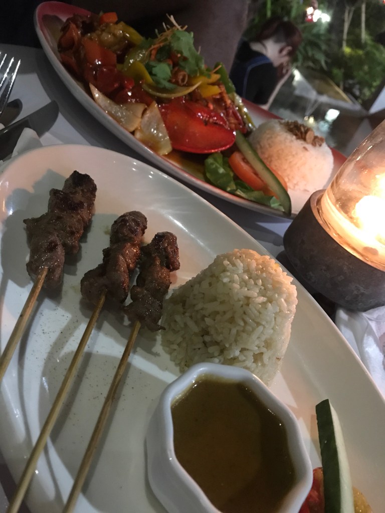 We chose lobster with sweet and sour sauce and rice, and a lamb satay. Both delicious!