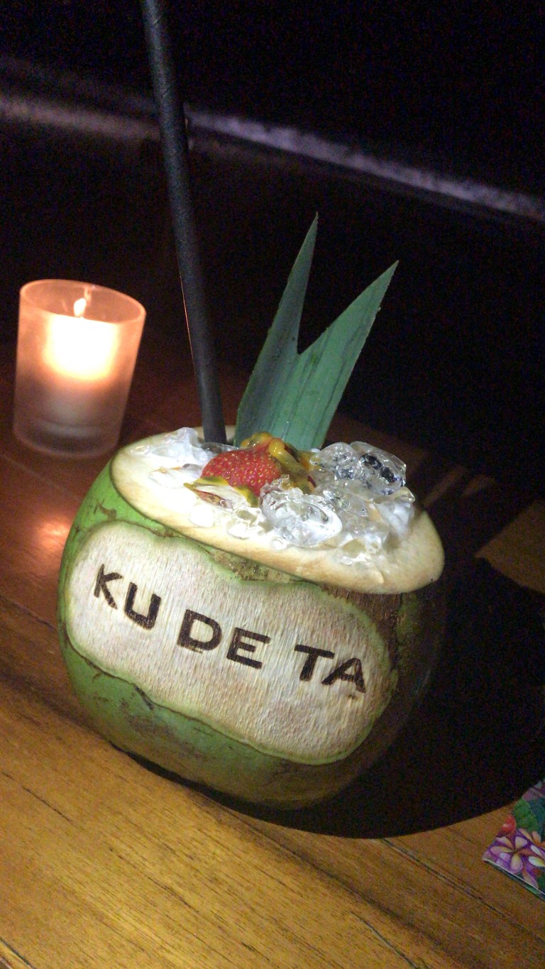 After freshening up and getting rid of all that sand, we headed out for dinner. We walked to KU DE TA which is a beach club in the day and restaurant and bar overlooking the ocean at night.