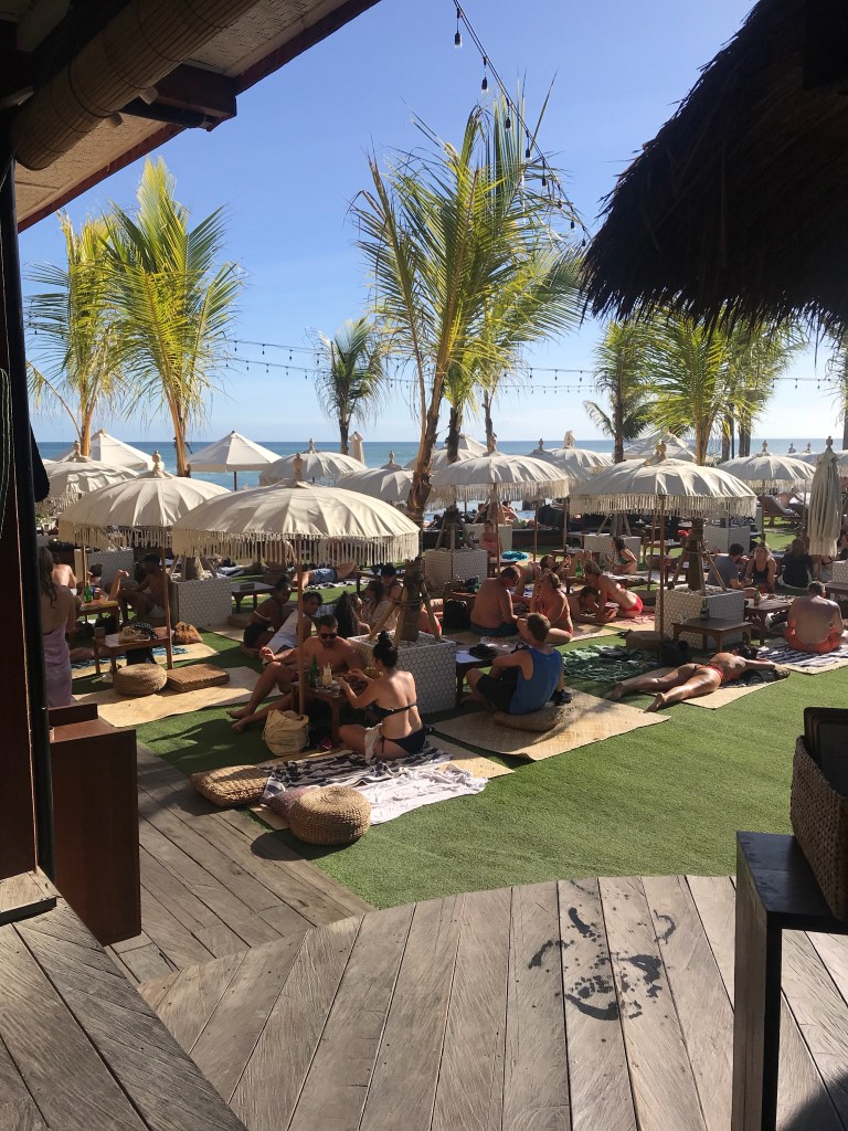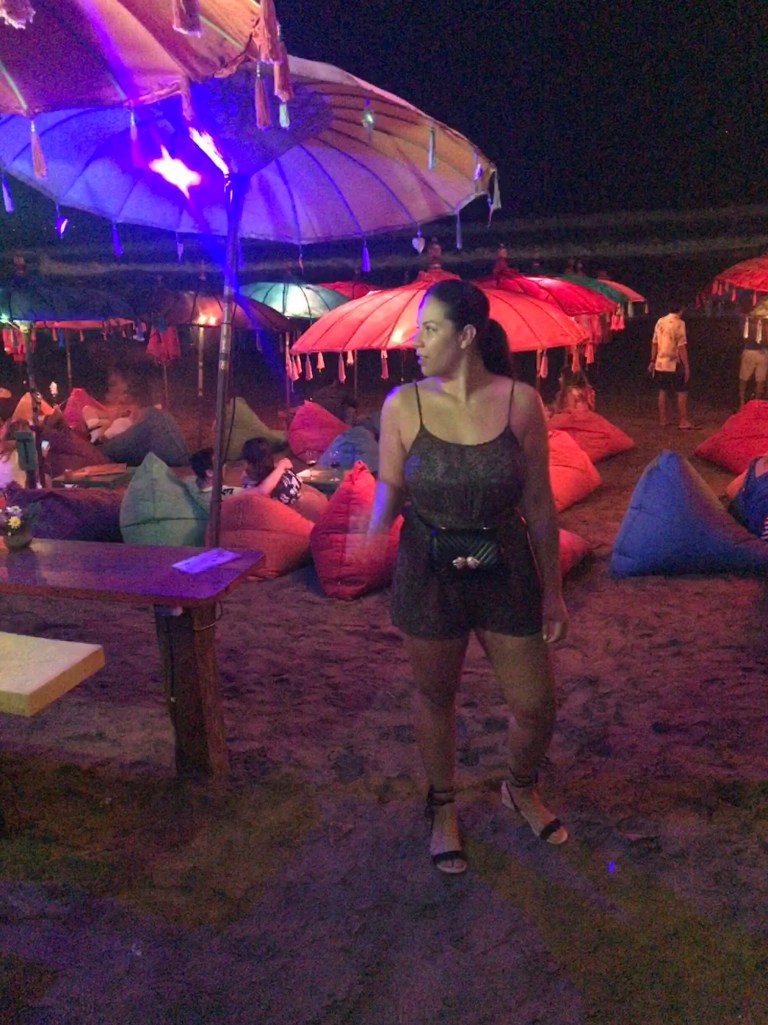 As we chose our dreamy seat for the evening it was crazy to think that such a simple concept like bean bags and colourful umbrellas cos create such a beautiful setting that would be so popular. The weather in Bali can create this environment and people can enjoy the beauty of nature with a western twist.