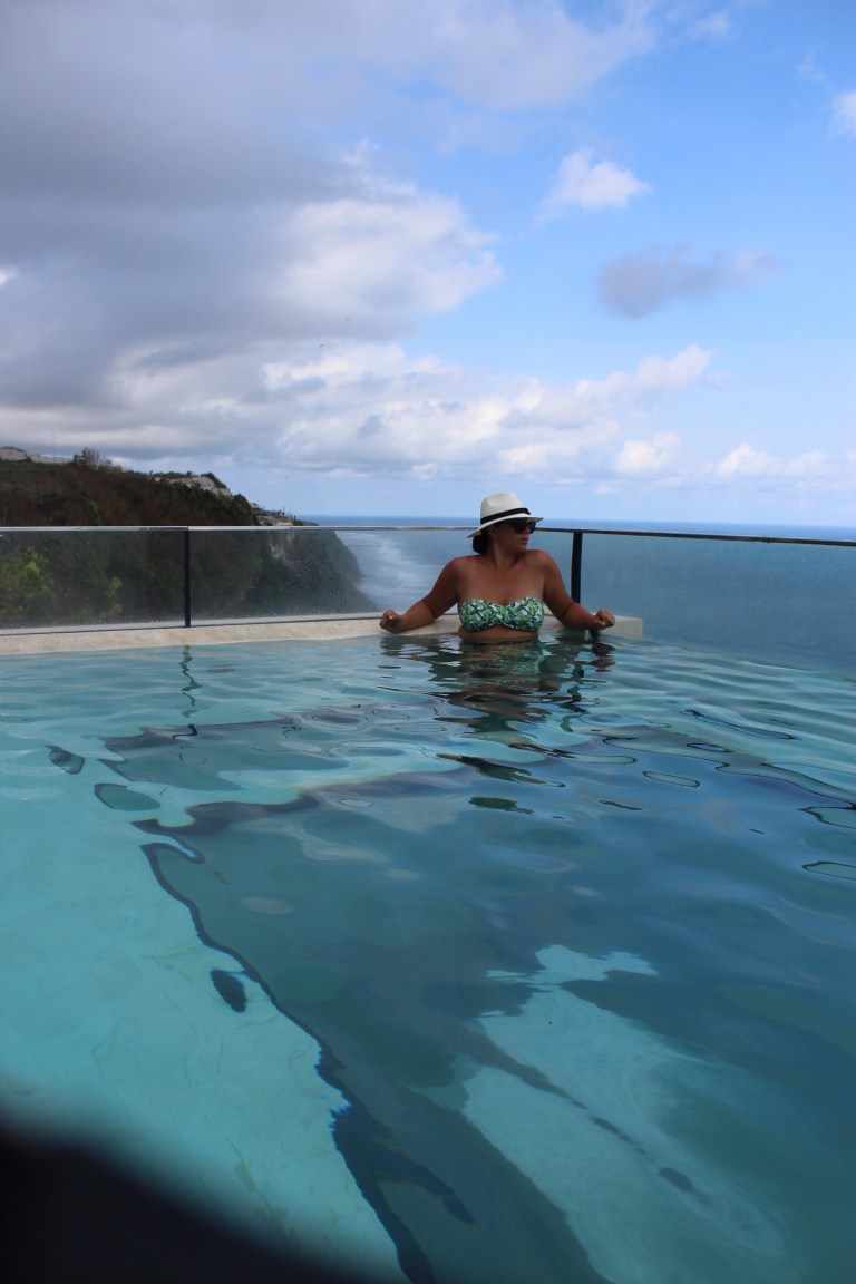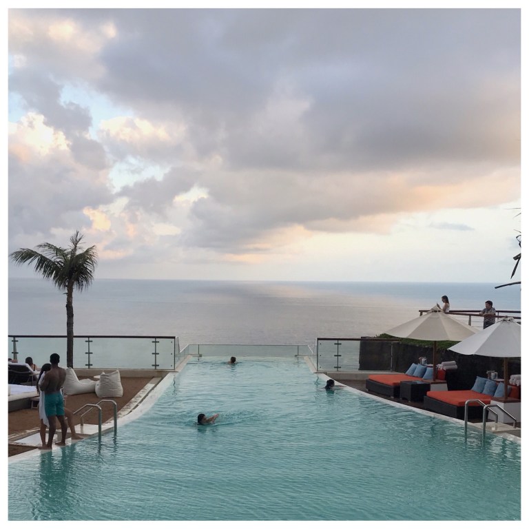 We slowly got ready to enjoy a day at The Edge! It’s a luxury hotel on top of the cliffs of Uluwatu that has recently opened its doors for us to all enjoy the swimming pool that sits at the edge of the cliff with a clear glass floor for you to freak yourself out with while standing on it!