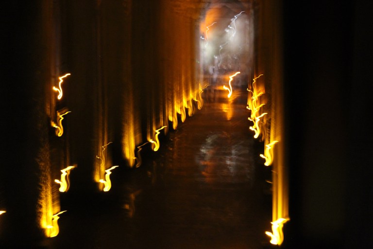 Built in the 6th century during the reign of a Byzantine emperor is located 150 metres southwest of the Hagia Sophia and is the largest of several hundred ancient cisterns that lie beneath the city of Istanbul. Ancient texts indicate that the basilica contained gardens, surrounded by a colonnade which also held a water filtration system for the great palace of Constantinople.