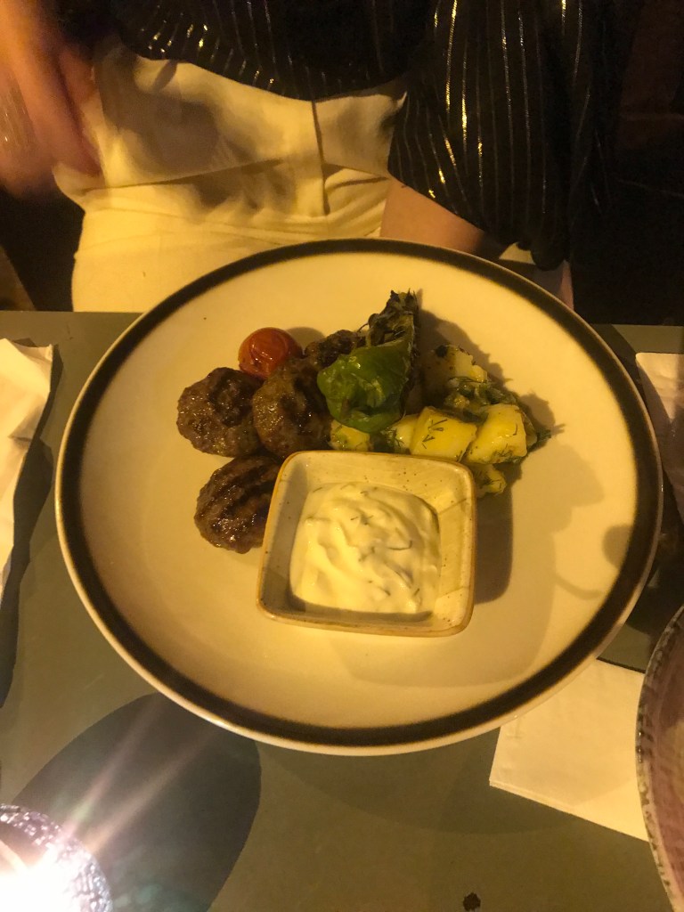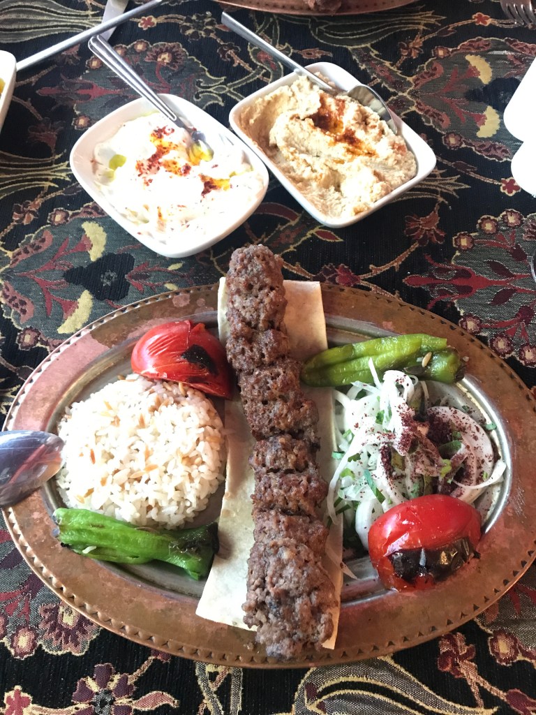 For dinner we took a stroll around Cihangir, a small district in Beyoglu, known for its quirky vibe, chilled out bars, new restaurants and music. We found a restaurant called Sesam. We sat outside in the evening breeze and enjoyed wine with our mezze and lamb kofta.