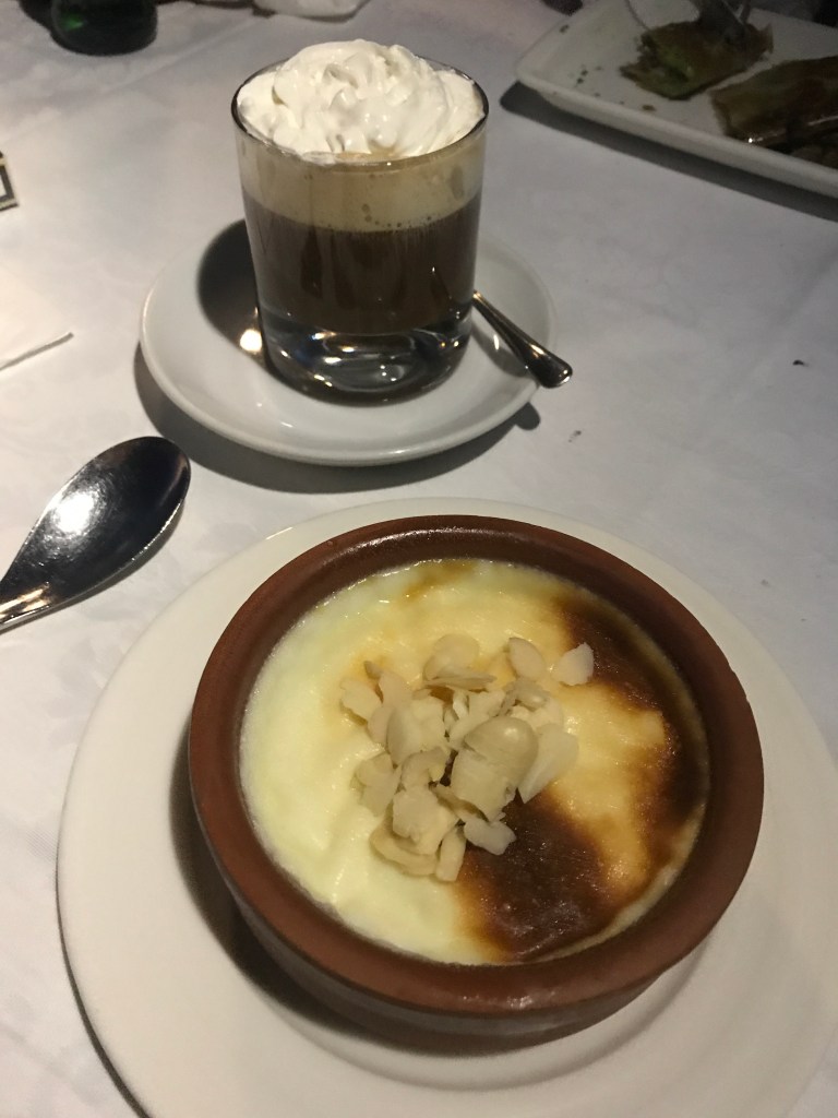 We enjoyed fresh fish and lamb, grilled halloumi, and olives. Following with traditional Turkish rice pudding and a very strong whisky in hot chocolate. The food was beautiful!